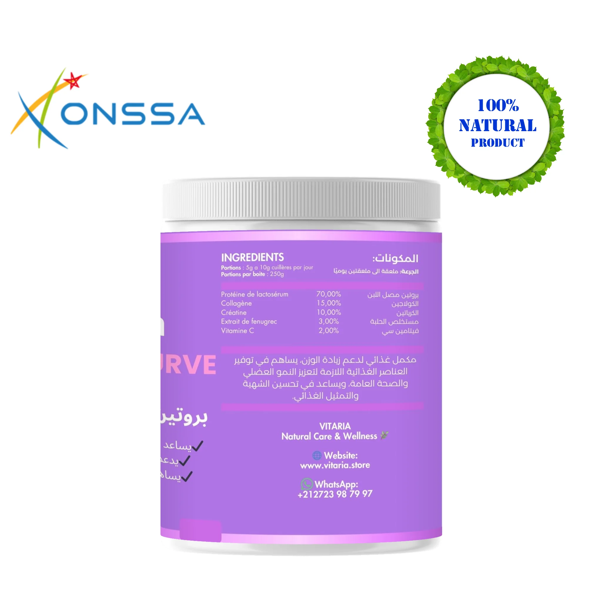 بروتين خاص مصمم لدعم زيادة حجم المناطق الأنثوية مثل الأرداف والثديين بشكل طبيعي ومتوازن. يجمع بين البروتينات النباتية ومغذيات داعمة تعمل على تغذية العضلات وتحفيز امتلاء المناطق المستهدفة دون التأثير على الوزن العام للجسم. مثالي للنساء الراغبات في إبراز منحنيات أنثوية بطريقة صحية الفوائد يساعد على تكبير الأرداف والثديين بشكل طبيعي يدعم بناء الكتلة العضلية الخفيفة في المناطق المستهدفة يعزز المظهر الأنثوي ويزيد الثقة بالنفس.