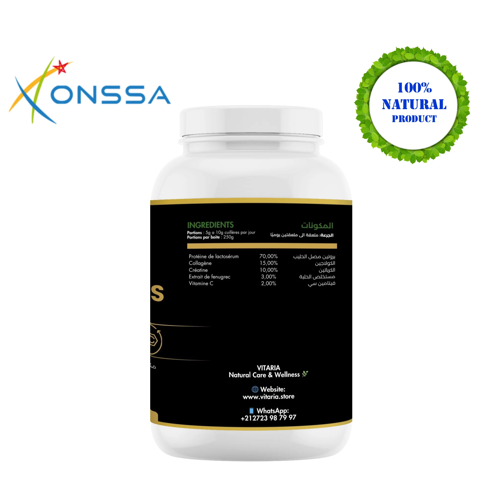 يجمع هذا المكمّل بين بروتين مصل الحليب عالي الجودة، الكولاجين، الكرياتين، خلاصة الحلبة، وفيتامين C في تركيبة متكاملة تدعم النمو العضلي، وتزيد الطاقة، وتعزز صحة المفاصل والاستشفاء العضلي.